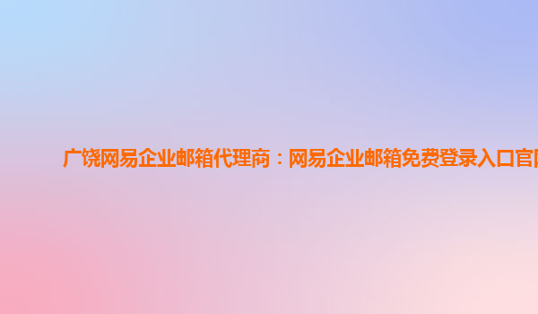 广饶网易企业邮箱代理商:网易企业邮箱免费登录入口官网