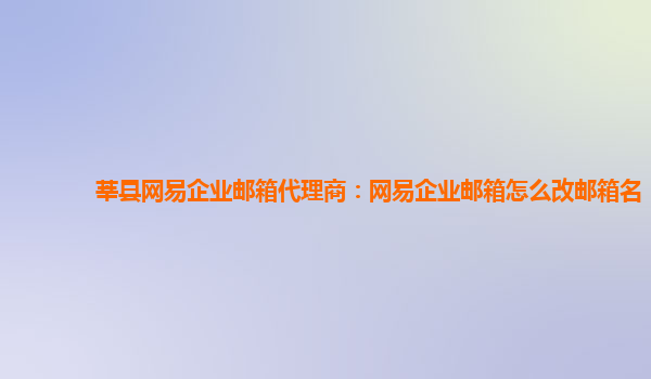 莘县网易企业邮箱代理商:网易企业邮箱怎么改邮箱名