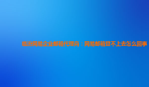 临汾网易企业邮箱代理商:网易邮箱登不上去怎么回事