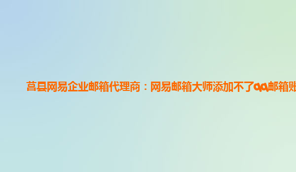 最近有用户反馈在使用网易企业邮箱时,遇到了一个问题,就是在网易邮箱大师中无法添加QQ邮箱账号。这让用户感到困惑和不知所措。作为莒县网易企业邮箱的代理商,我们将为您解答这个问题。