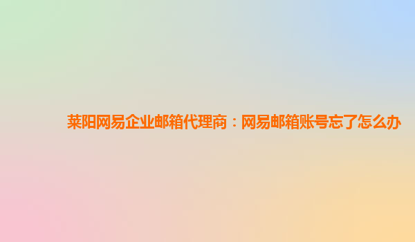 莱阳网易企业邮箱代理商:网易邮箱账号忘了怎么办