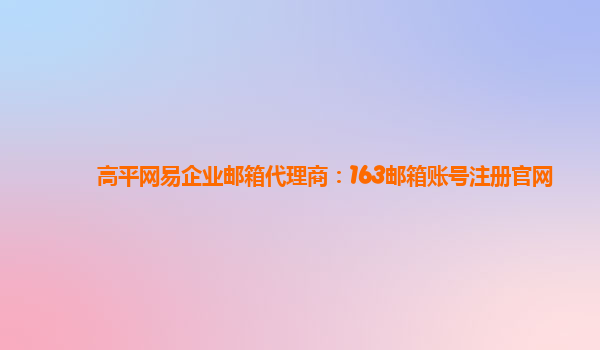 高平网易企业邮箱代理商:163邮箱账号注册官网