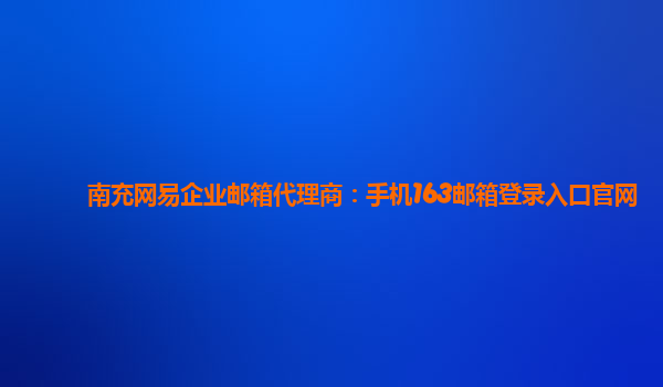 南充网易企业邮箱代理商:手机163邮箱登录入口官网