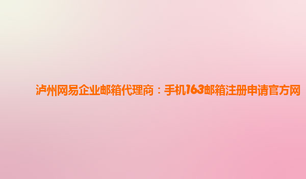 泸州网易企业邮箱代理商:手机163邮箱注册申请官方网
