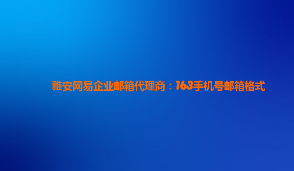 雅安网易企业邮箱代理商:163手机号邮箱格式