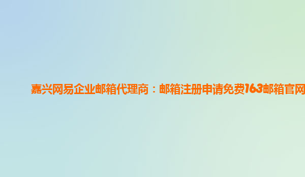 嘉兴网易企业邮箱代理商:邮箱注册申请免费163邮箱官网