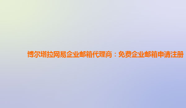 博尔塔拉网易企业邮箱代理商:免费企业邮箱申请注册