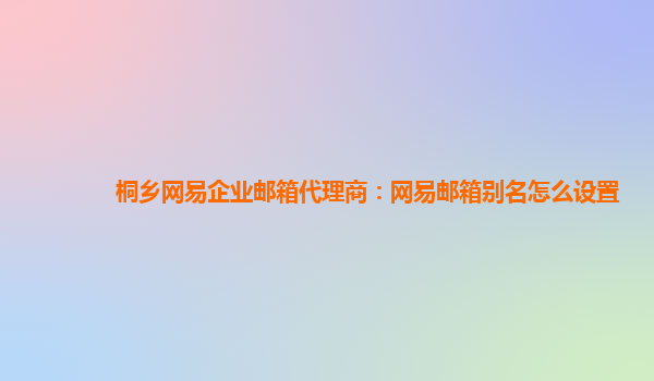桐乡网易企业邮箱代理商:网易邮箱别名怎么设置