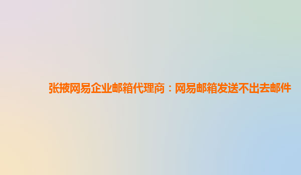 张掖网易企业邮箱代理商:网易邮箱发送不出去邮件