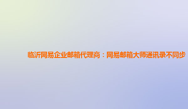 临沂网易企业邮箱代理商:网易邮箱大师通讯录不同步