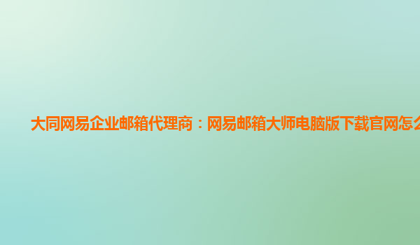大同网易企业邮箱代理商:网易邮箱大师电脑版下载官网怎么下载