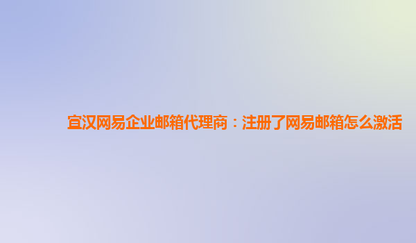 宣汉网易企业邮箱代理商:注册了网易邮箱怎么激活