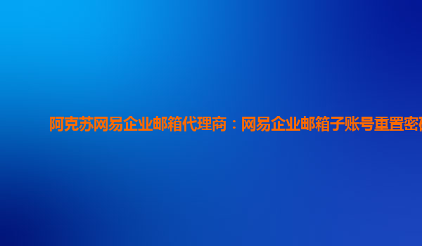 阿克苏网易企业邮箱代理商:网易企业邮箱子账号重置密码
