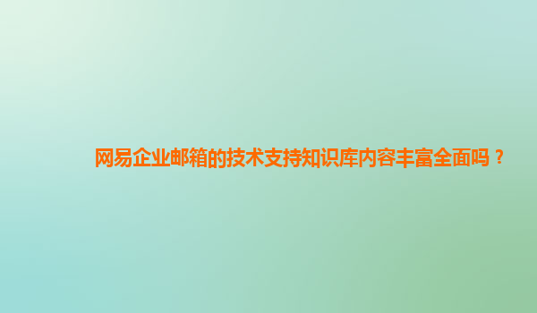 网易企业邮箱的技术支持和知识库内容详实丰富,不仅涵盖了基础的邮件服务功能,还提供了诸如智能助手、反垃圾功能等增值服务。其技术支持和多样化服务使其在企业邮箱市场中保持了优势地位,适合各类企业提高沟通效率并确保信息安全[(企业邮箱的POP、SMTP、IMAP服务器地址设置。(含海外客户端配置))](https://qiye.163.com/help/client-profile.html)[(怎么搭知识库提效?-产品更新-网易企业邮箱-免费试用即时开通-网易域名邮箱-领先网络)](https://www.ym163.com/?product-update/6758.html)。