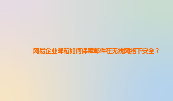 网易企业邮箱如何保障邮件在无线网络下安全