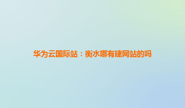 2025-12-14华为云国际站:衡水哪有建网站的吗?专业建站解决方案 一、衡水企业建站需求背景 随着数字化浪潮的推进,衡水地区的企业越来越意识到建设专业网站的重要性。无论是传统制造业、农业还是新兴...