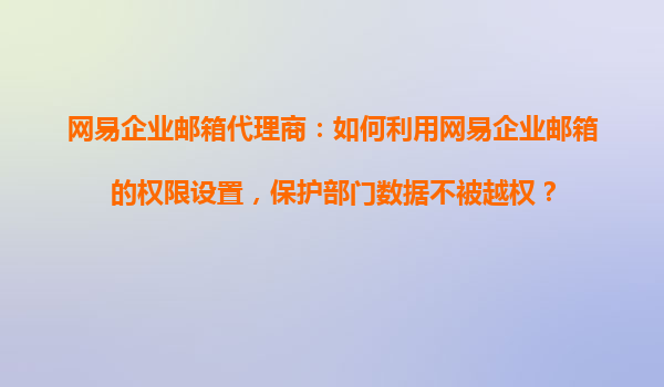 2025-11-02网易企业邮箱代理商:如何利用网易企业邮箱的权限设置,保护部门数据不被越权? 1.网易企业邮箱的权限管理优势 网易企业邮箱作为国内领先的企业级邮件服务提供商,在权限管理方面具备以下核心优势: ...