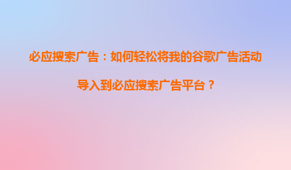 2025-11-01必应搜索引擎竞价推广的核心优势与标题内容深度解析 一、精准流量覆盖,锁定高价值用户群体 必应搜索作为微软生态的核心入口,在全球商业搜索市场占比达33%,其用户群体具有显著的商务属性。数据显示,必应...