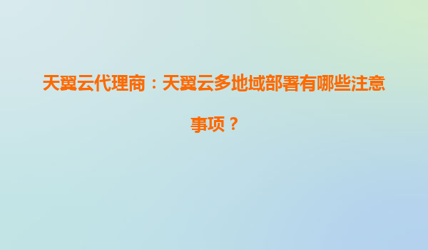 2025-04-17天翼云多地域部署的注意事项与优势分析 一、多地域部署的核心价值与天翼云优势 多地域部署是企业实现业务高可用、低延迟和合规目标的关键策略。天翼云凭借覆盖全国的“2+4+31+X”资源池布局及海外...