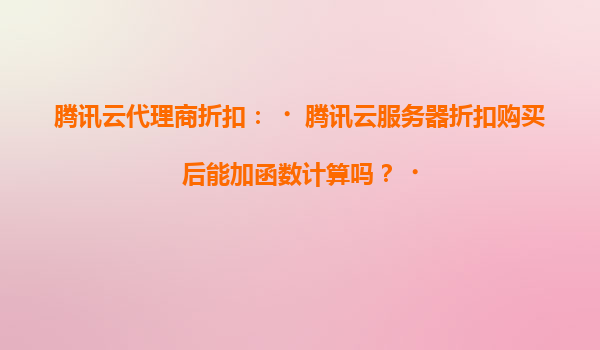 2025-04-17腾讯云代理商折扣:腾讯云服务器折扣购买后能加函数计算吗? 一、腾讯云的产品生态与协同优势 腾讯云作为国内领先的云计算服务商,其产品生态以高度集成和灵活性著称。通过代理商购买的云服务器(...