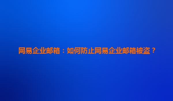 2025-04-17如何防止网易企业邮箱被盗? 在当今信息化社会中,邮箱是我们工作和生活中不可或缺的一部分,尤其是对于企业而言,邮箱作为与客户、合作伙伴沟通的重要工具,安全性至关重要。网易企业邮箱作为国内知名的企...