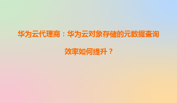 2026-01-09华为云代理商:华为云对象存储的元数据查询效率如何提升? 引言 在当今数据驱动的时代,高效的数据存储与查询能力已成为企业数字化转型的核心需求之一。华为云对象存储(OBS)凭借其高可靠、高扩展性的特性...