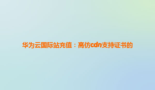 2025-12-27华为云国际站充值:高仿CDN支持证书的全面解析 引言 在全球数字化转型浪潮中,云计算与内容分发网络(CDN)已成为企业提升用户体验、保障数据安全的核心技术。华为云国际站凭借其强大的技术实...