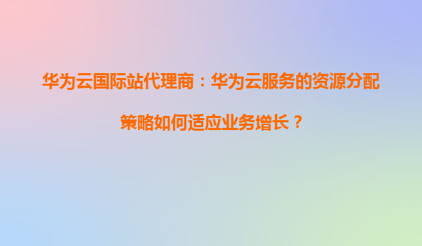 2026-01-09华为云国际站代理商:华为云服务的资源分配策略如何适应业务增长? 引言 随着企业数字化转型的加速,云计算已成为支撑业务增长的核心基础设施。华为云作为全球领先的云服务提供商,凭借其强大的技术实力和...