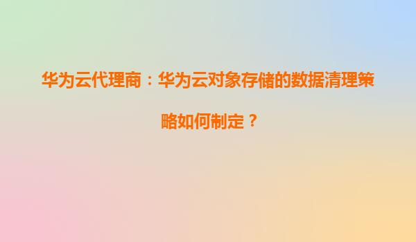 2026-01-09华为云代理商:华为云对象存储的数据清理策略制定指南 一、华为云对象存储的核心优势 在制定数据清理策略前,首先需要了解华为云对象存储(OBS)的核心技术优势: 高可靠性:...