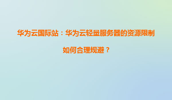 2026-01-09华为云国际站:华为云轻量服务器的资源限制如何合理规避? 一、华为云轻量服务器的核心优势 在探讨如何规避资源限制之前,首先需要了解华为云轻量服务器的独特优势,这些优势为用户提供了更多灵活性和优化空...