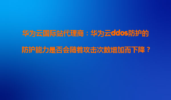 华为云国际站代理商解析:华为云DDoS防护的防护能力是否会随着攻击次数增加而下降? 引言 在当今数字化时代,网络安全问题日益严峻,分布式拒绝服务攻击(DDoS)成为企业面临的重大威胁之一。华为云作为全...