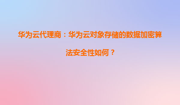 2026-01-08华为云代理商:华为云对象存储的数据加密算法安全性解析 在数字化时代,数据安全已成为企业核心竞争力的重要组成部分。华为云作为全球领先的云服务提供商,其对象存储(OBS)服务凭借强大的数据加密能力,为用...