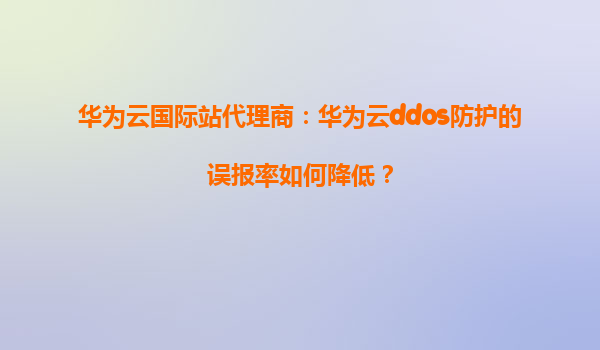 2026-01-08华为云国际站代理商:华为云DDoS防护的误报率如何降低? 引言 随着云计算技术的快速发展,网络安全问题日益凸显。DDoS(分布式拒绝服务)攻击是当前企业面临的主要威胁之一。华为云作为全球领先的云服...
