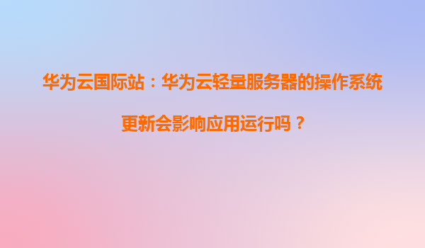 2026-01-08华为云国际站:华为云轻量服务器的操作系统更新会影响应用运行吗? 一、操作系统更新的必要性 操作系统更新是维护服务器安全性和稳定性的重要手段。华为云轻量服务器定期推送操作系统更新,...