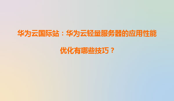 2026-01-08华为云国际站:华为云轻量服务器的应用性能优化技巧 引言 在当今数字化时代,云计算已成为企业IT基础设施的重要组成部分。华为云作为全球领先的云服务提供商之一,其轻量服务器(Lighthou...