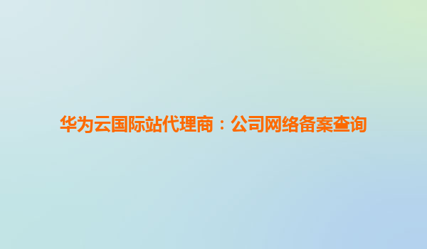 2025-12-20华为云国际站代理商:公司网络备案查询全攻略 一、华为云国际站代理商服务的核心优势 作为全球领先的云计算服务提供商,华为云通过其国际站代理商网络为企业用户提供高效、合规的网络备...