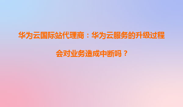 2026-01-08华为云国际站代理商:华为云服务的升级过程会对业务造成中断吗? 一、华为云服务升级的核心原则:业务连续性优先 作为全球领先的云服务提供商,华为云始终将客户业务连续性置于首位。其升级策略遵...