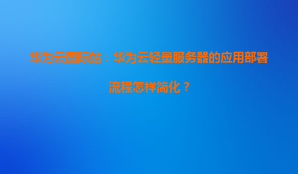 华为云国际站:华为云轻量服务器的应用部署流程怎样简化? 引言 随着云计算技术的不断发展,越来越多的企业和开发者选择将应用部署到云端。华为云作为全球领先的云服务提供商,其轻量服务器产品以其高效、便捷...