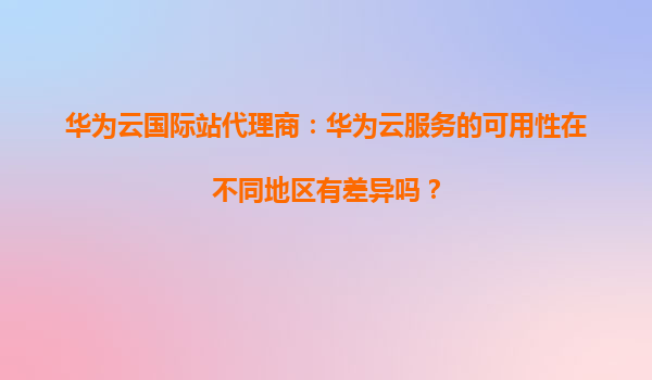 华为云国际站代理商:华为云服务的可用性在不同地区有差异吗? 随着全球数字化转型的加速,云计算服务已成为企业IT基础设施的核心组成部分。华为云作为全球领先的云服务提供商,凭借其强大的技术实力和全球化布...