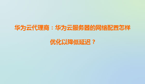 2026-01-08华为云代理商:华为云服务器的网络配置优化指南 一、引言 在云计算时代,服务器的网络性能直接影响用户体验和业务效率。作为华为云代理商,我们深知网络延迟是许多企业关注的焦点问题。华为云服务...