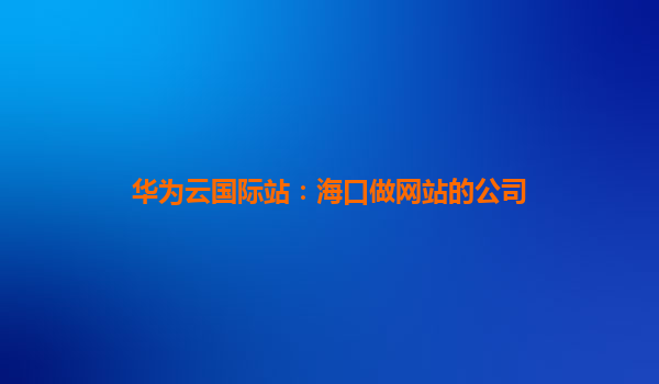 2025-12-17华为云国际站:海口做网站的公司首选合作伙伴 一、海口企业建站需求与市场现状 随着数字化浪潮席卷全球,海口作为海南自由贸易港的核心城市,越来越多的企业开始重视线上业务布局。从传统外贸...