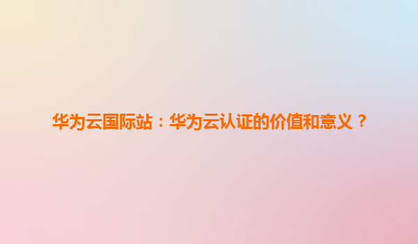 华为云国际站:华为云认证的价值与意义 一、引言:数字化转型时代的云技术需求 在全球数字化转型加速的背景下,云计算技术已成为企业创新和业务增长的核心驱动力。华为云作为全球领先的云服...