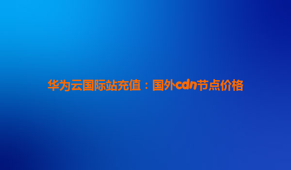 2025-12-06华为云国际站充值:国外CDN节点价格及优势解析 引言 随着全球化业务的快速发展,企业对高效、稳定的内容分发网络(CDN)需求日益增长。华为云作为全球领先的云服务提供商,其国际站提供的国外CDN节点服务凭...