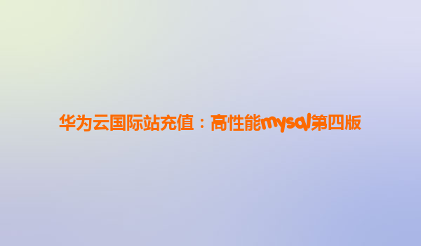 2025-12-03华为云国际站充值助力企业高效部署《高性能MySQL(第四版)》 引言:数据库性能优化与企业上云趋势 随着数字化转型加速,《高性能MySQL(第四版)》作为数据库优化领域的权威指南...