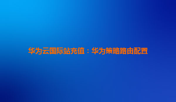 2025-12-02华为云国际站充值:华为策略路由配置指南 一、华为云国际站充值流程简介 华为云国际站为全球用户提供便捷的云计算服务,充值流程简单高效。用户可通过华为云国际站官网登录账号,选择充值方式(如...