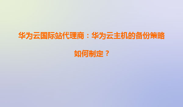 2026-01-06华为云国际站代理商:华为云主机的备份策略如何制定? 引言 在数字化时代,数据已成为企业最宝贵的资产之一。华为云作为全球领先的云服务提供商,凭借其强大的技术实力和丰富的行业经验,为企...