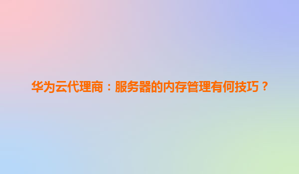 2026-01-10华为云代理商:服务器的内存管理有何技巧? 引言 在云计算时代,服务器的内存管理是确保业务高效稳定运行的关键因素之一。作为华为云代理商,我们深知内存管理的重要性,特别是在处理高并发、大数据等场景时...