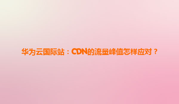 华为云国际站:CDN的流量峰值应对策略 一、CDN流量峰值的挑战与影响 在数字化时代,内容分发网络(CDN)作为加速网站访问的核心技术,常面临突发流量峰值的考验。电商大促、热门事件或全球性...