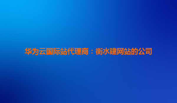 华为云国际站代理商:衡水建网站的公司 在当今数字化时代,企业建站已成为品牌展示、业务拓展的重要途径。作为华为云国际站代理商,衡水建网站的公司致力于为客户提供高效、安全、稳定的网站建设服务,依托华为云...