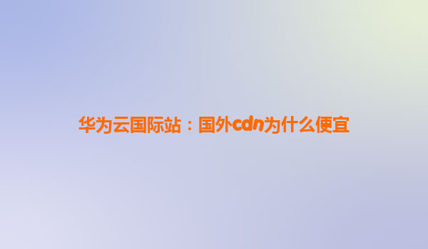 2025-11-19华为云国际站:国外CDN为什么便宜 一、引言 在全球化浪潮下,企业对于高效、稳定的内容分发网络(CDN)需求日益增长。许多用户发现,国外CDN服务往往价格较低,这背后既有市场竞争的原因,也...